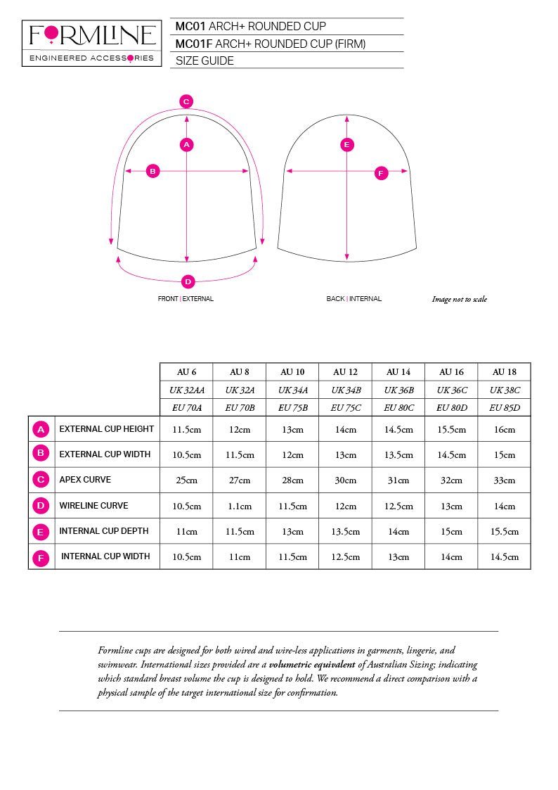 All cup measurements in mm and dimensions are approximate. We recommend purchasing a sample pair to ensure that fit is correct for your garment.