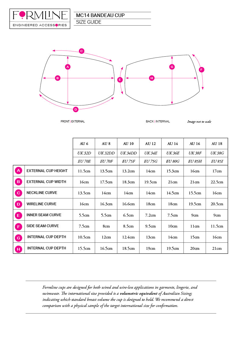 All cup measurements in mm and dimensions are approximate. We recommend purchasing a sample pair to ensure that fit is correct for your garment.