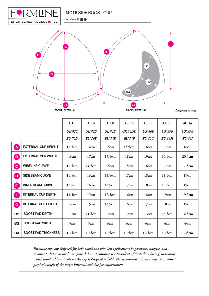 All cup measurements in mm and dimensions are approximate. We recommend purchasing a sample pair to ensure that fit is correct for your garment.