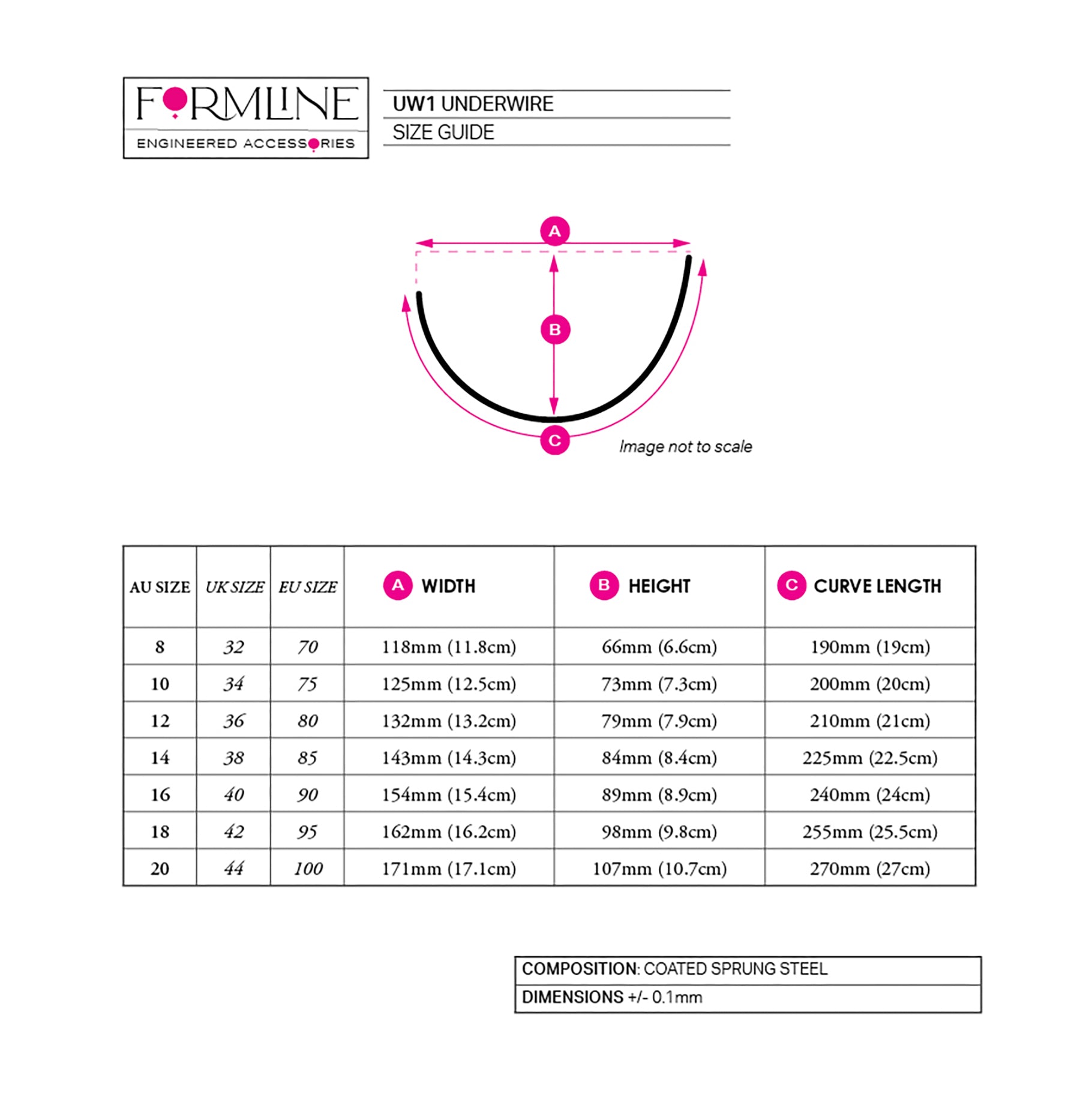 Superior quality, sprung steel underwires for lingerie and swimwear. Full-support style with extra length at sides.