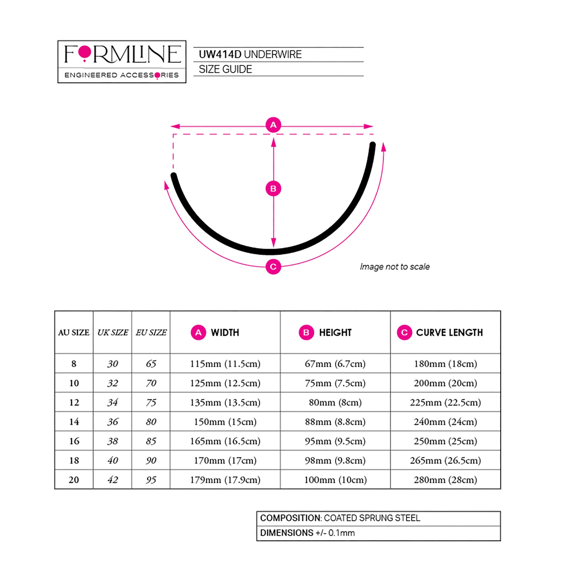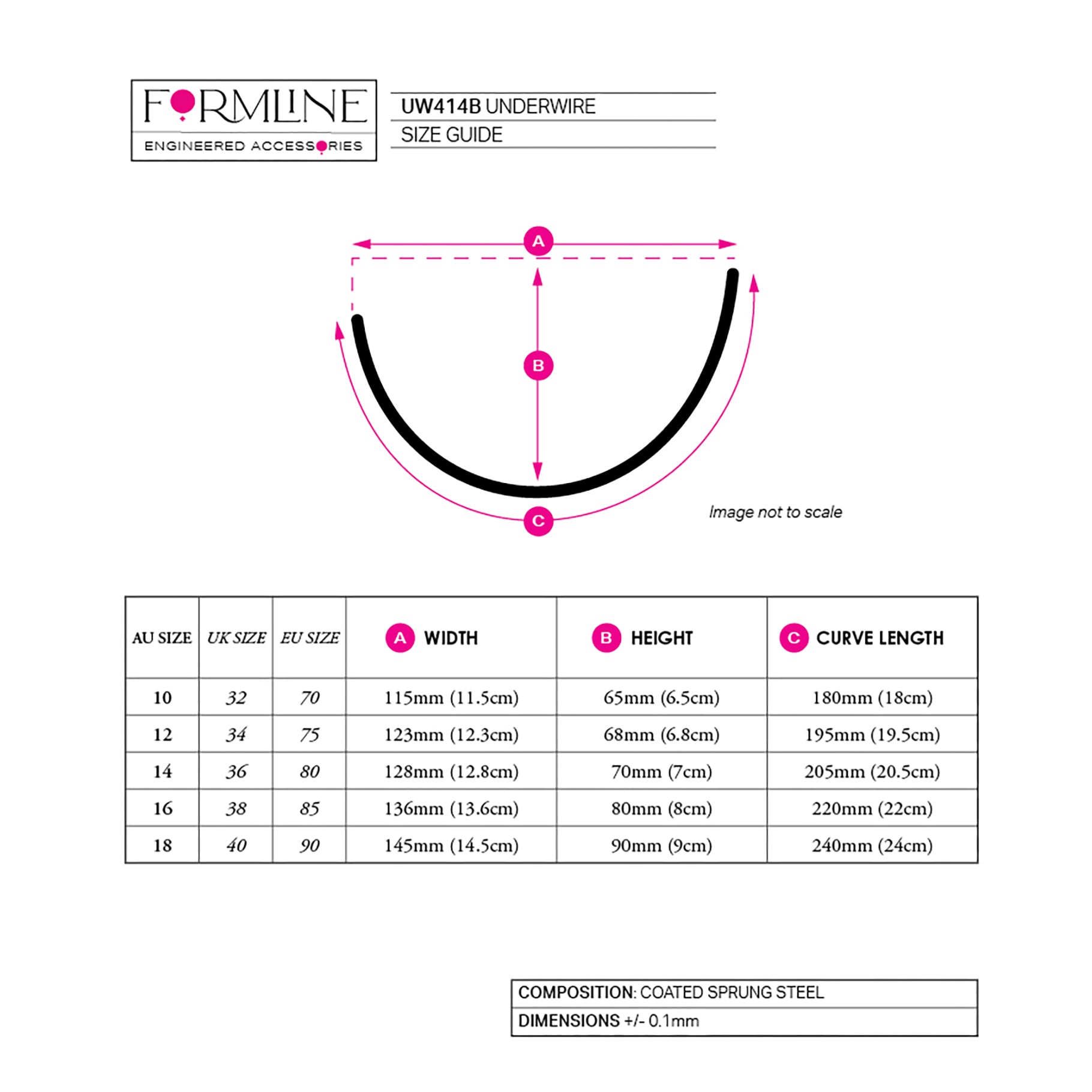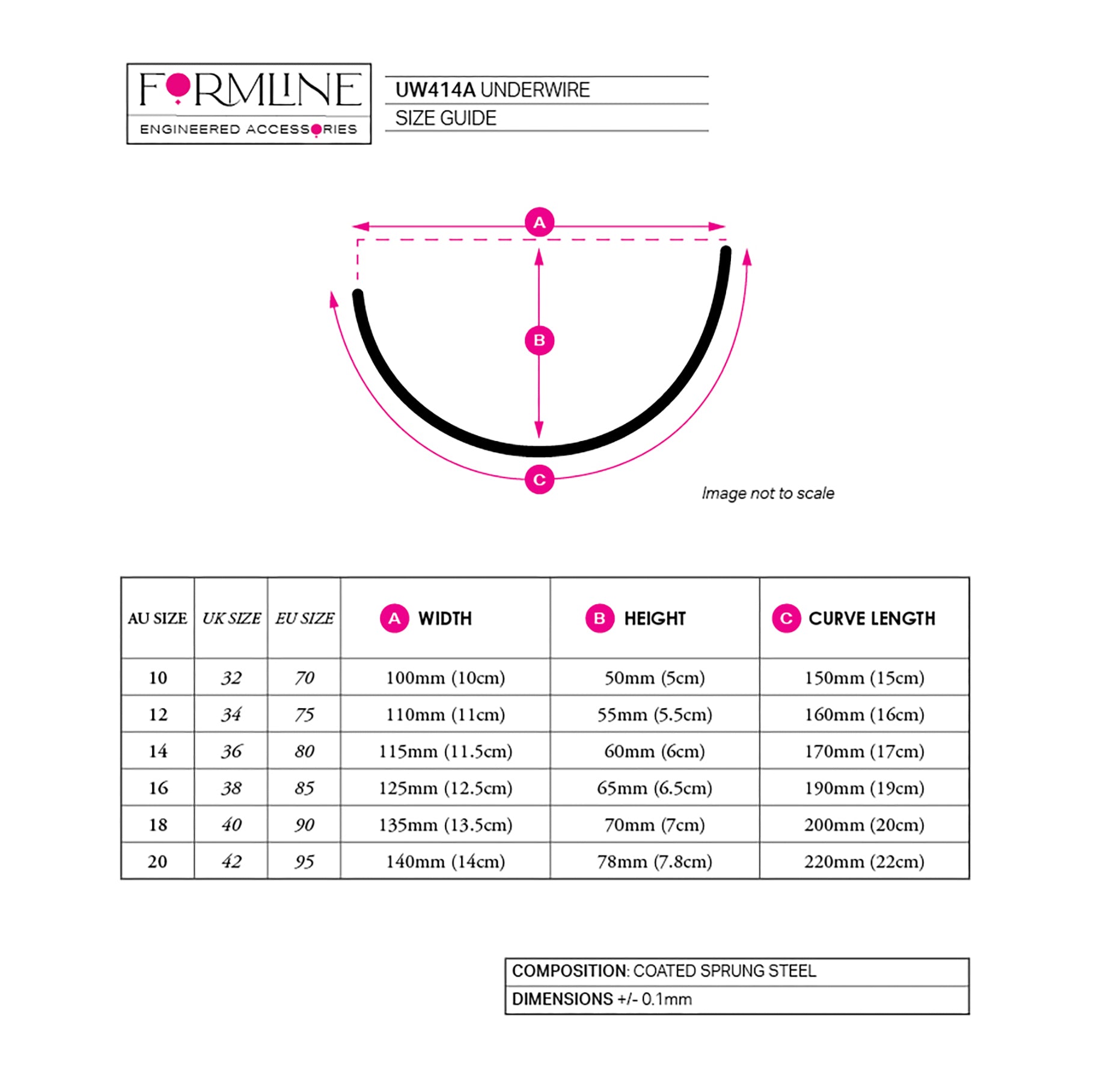 High-quality sprung-steel underwires suitable for swimwear and lingerie. Style offers support for a A-D cup sizes.