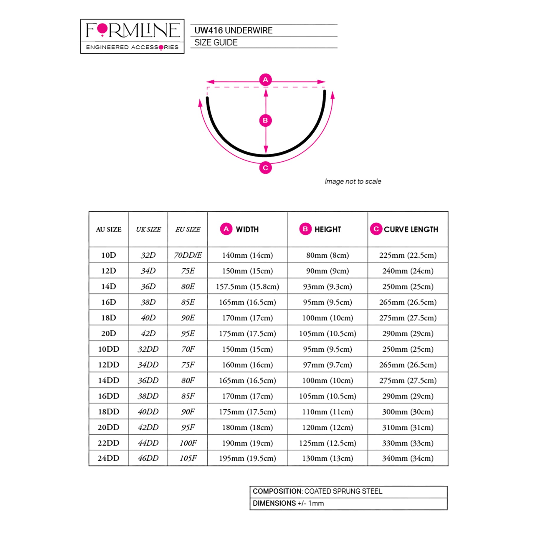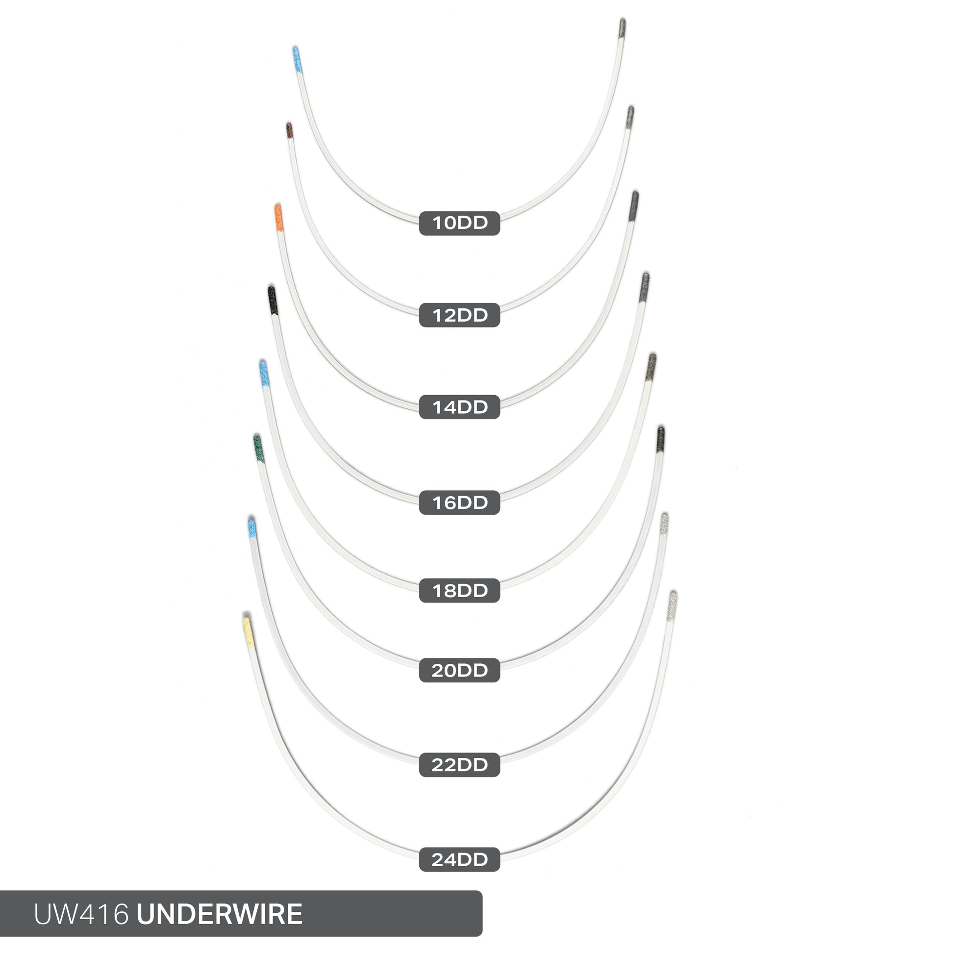 High-quality sprung-steel underwires suitable for swimwear and lingerie. Style offers enhanced support for a D-DD cup sizes.