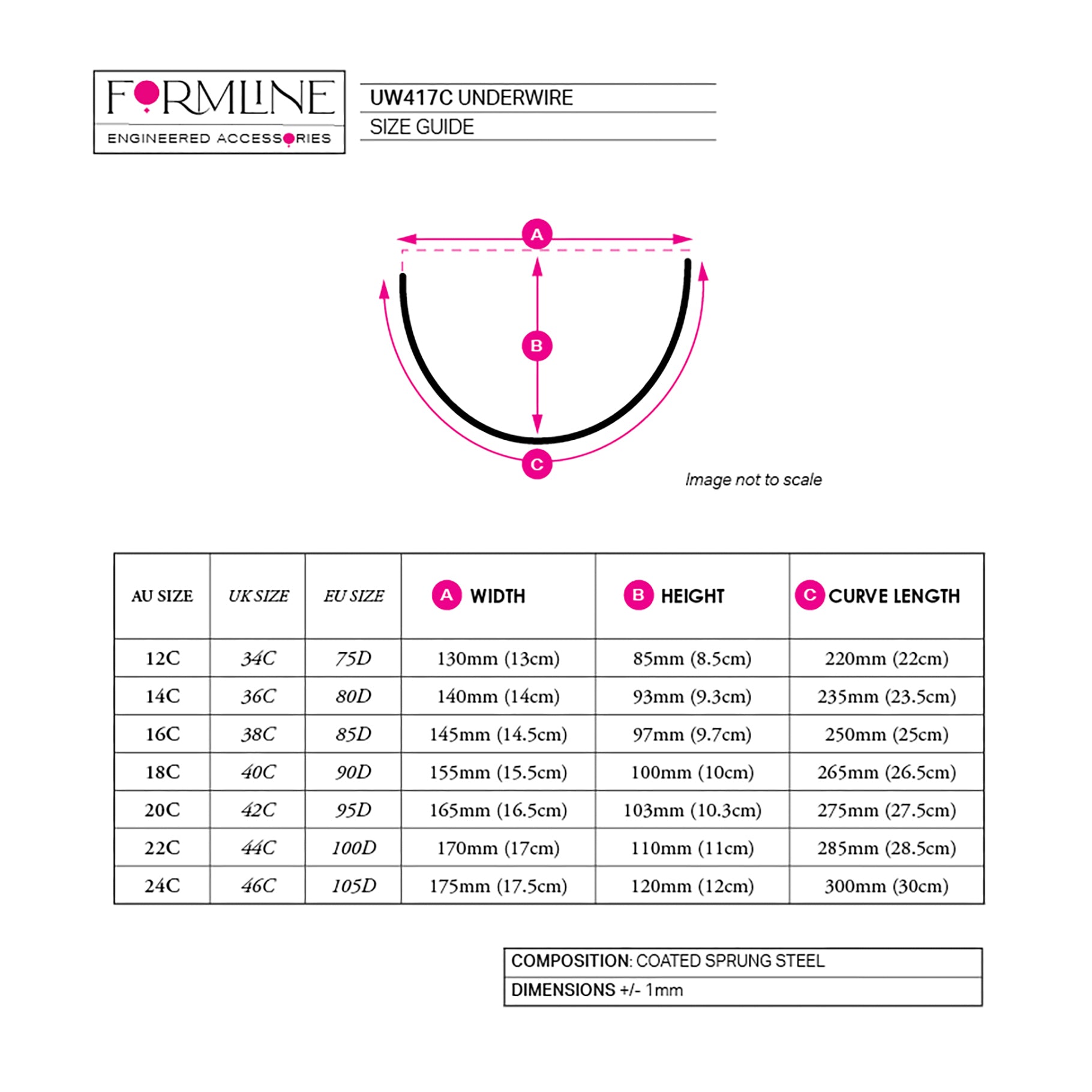 High-quality sprung-steel underwires suitable for swimwear and lingerie.