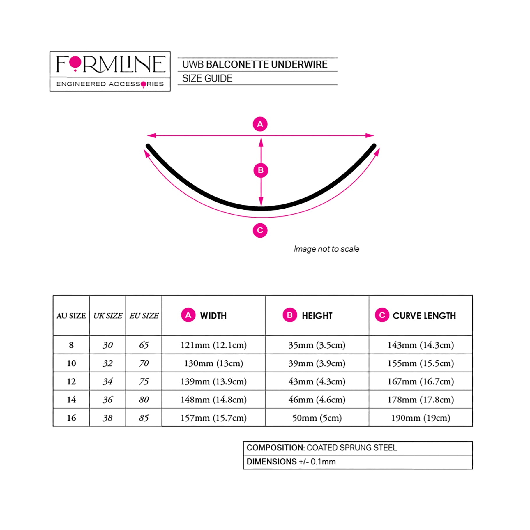 Style UWB coated, sprung-steel underwires are designed for balconette and low-cut styles where lift without full coverage is required.